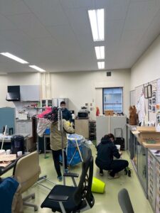 2日目午前はあいにくの雨。研究室の清掃作業から始まりました。とても綺麗になりました!