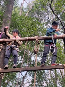 ターザンの巻き直しをするぴょん吉(UG4)とゆい(UG3)