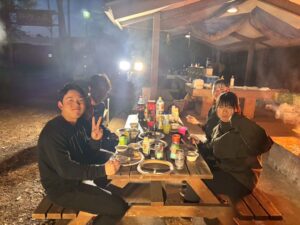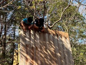 3日目は天候に恵まれ晴れました。ターザンの土台や、ウォールの補修作業など残りの作業を行いました。研究室内では学会資料の発送作業を実施しました。