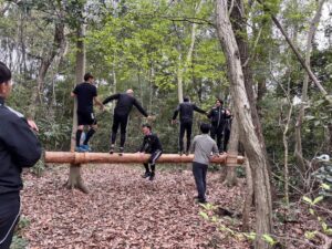 その後は各班に分かれて活動に入り、与えられた課題に対してグループごとに取り組みました。活動内容は、危険への配慮が求められるものや、班内での協力が不可欠なものなど多岐にわたり、単に課題をこなすだけでなく、メンバー同士でどのように意思疎通を図るか、どのように役割分担を行うかといった点も重要となりました。